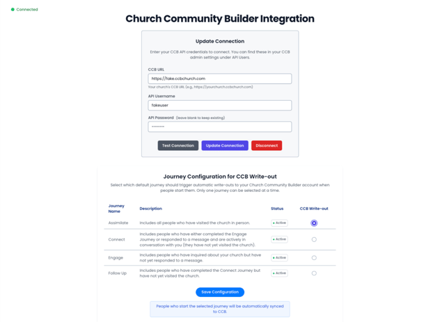 - When a person is added to this Journey, they will automatically be written into your ChMS account