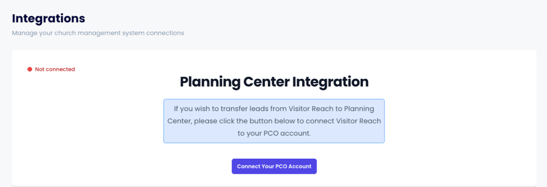 - Make sure your Planning Center credentials are active and correct before connecting the integration.
