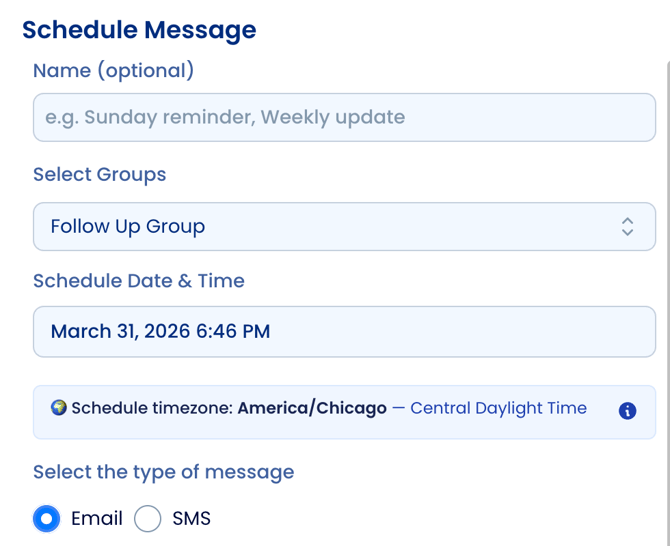 1. Navigate to Dashboard > Groups > Schedule Message