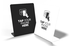 Table Stands are made from sturdy rigid PVC and designed to sit securely on any flat surface. These are perfect for info centers, café tables, or event spaces where people gather. With a sleek footprint and upright display, they’re a simple way to offer a tap point without needing to mount anything permanently. Note: Table Stands are sold individually. Custom designs are not available for this item.